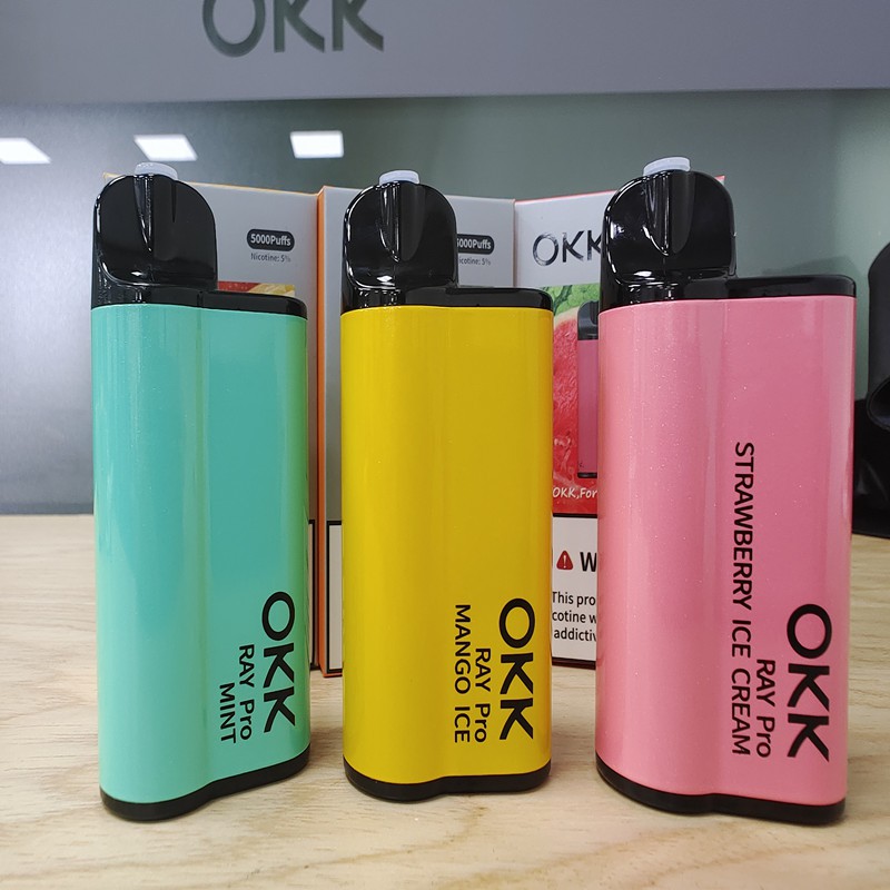 OKK RAY PRO 5000 Disposable Vape este o țigară electronică reîncărcabilă de unică folosință, care este pre-umplută cu ulei de țigară electronică de mare capacitate. OKK Ray Pro Disposable Vape este alimentat de o baterie reîncărcabilă de 650 mAh și pre-umplut cu lichid electronic de 12 ml cu o concentrație de 50 mg nicotină, care poate oferi până la 5000 de ori de aspirație. O capacitate mare de ulei de tutun, ceea ce înseamnă încărcarea dispozitivului atunci când alimentarea este oprită. OKK Ray Pro Disposable Vape trebuie să aducă o experiență de pompare MTL de durată și autentică vaporizatorului, iar funcția de activare inspiratorie simplifică și mai mult procesul de utilizare.